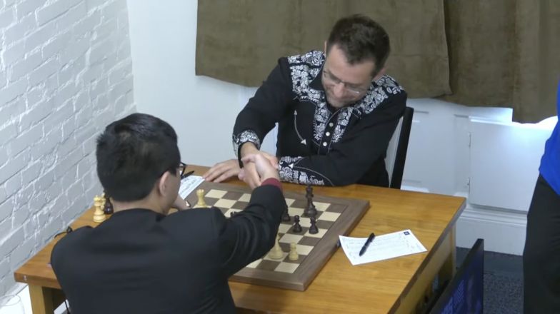 Спасибо, Кейт. Да, я сейчас с ещё одним лидером турнира — Уэсли Со, который только что выиграл партию у Сэма Шенкленда и вышел в единоличные лидеры с двумя с половиной очками из трёх.