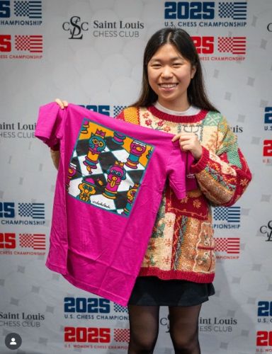 Carissa Yip scored the first win of the day in the U.S. Women’s Chess Championship and took home this vibrant Charles Houska tee — wearable art from the World Chess Hall of Fame, available at Q Boutique STL.