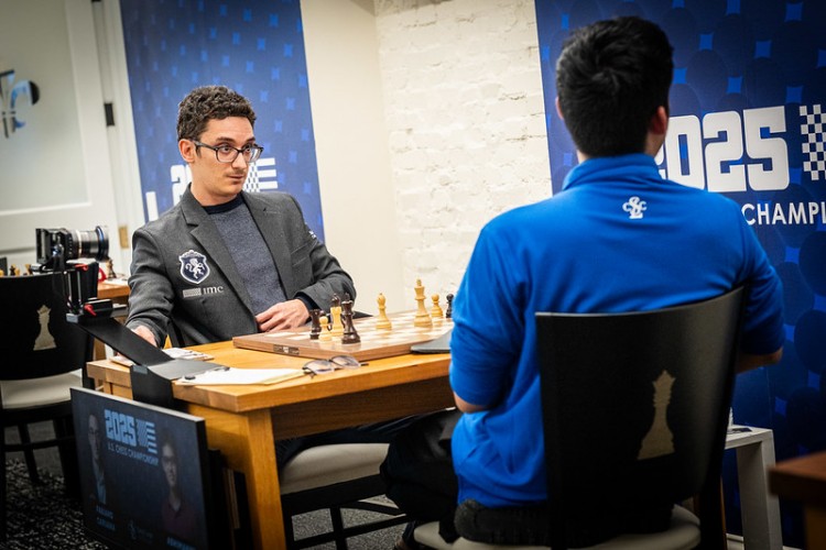 Ну, если Фаби сделал ничью с Мишрой, то я, думаю, буду в более выгодном положении, ведь он завтра играет чёрными против Левона. Но Фаби и Григорий Опарин работают вместе — так что это будет что-то вроде командного поединка. Опарин тоже очень сильный, я думаю, он многому научился у Фаби, и наоборот: они постоянно играют блиц, обмениваются идеями по дебютам. Так что пара будет трудная, но, конечно, помогает то, что у меня белые, а у Фаби — Левон.