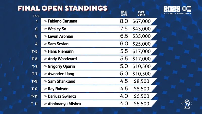 Фабиано Каруанасыграл вничью с Левоном Ароняном, сохранив лидерство… пока. Теперь давление лежит на Уэсли. Победа над Григорием Опариным выведет его в плей-офф за титул чемпиона США! Справится ли Уэсли?