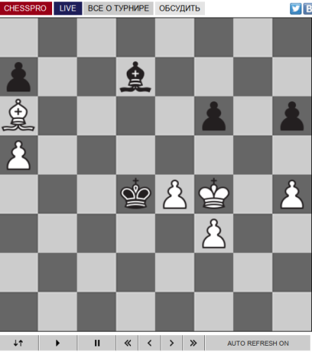 | Что-то там с оценкой позиции не то. Сейчас должен быть 42й ход, а движок думает, что 40й. |