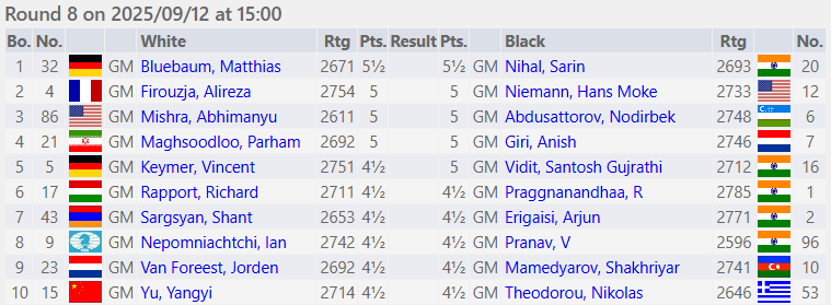 | SedovArs: Чемпион мира играет на предпоследнем столе с Дивьей, имеющей больше очков, чем он. |