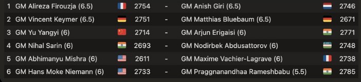 Винсент: Да, это естественно. Сейчас уже почти никто не может довольствоваться ничьими. Для меня, например, с моим высоким рейтингом жребий часто подбрасывает более низкорейтинговых соперников, а это ухудшает коэффициент. Поэтому мне нужно сделать минимум +5. Если бы я не выиграл сегодня, пришлось бы побеждать в обеих оставшихся партиях белыми и чёрными, что почти нереально. То же касается Ханса, Аниша и Алирезы. Поэтому все рискуют.