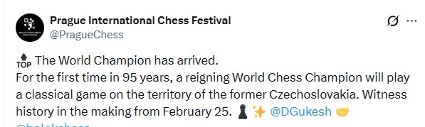 Впервые за 95 лет действующий чемпион мира по шахматам сыграет классическую партию на территории бывшей Чехословакии. Станьте свидетелями истории, которая будет твориться с 25 февраля.