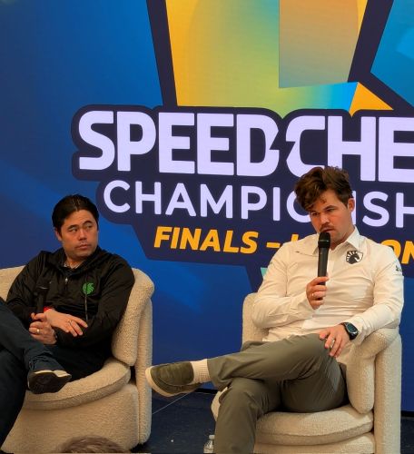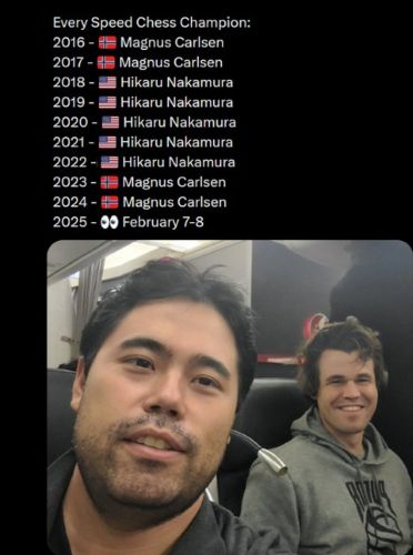 | С этой фантастической победой(19-9) Алиреза присоединился к Магнусу и Хикару в полуфиналах чемпионата SpeedChess 2025. |