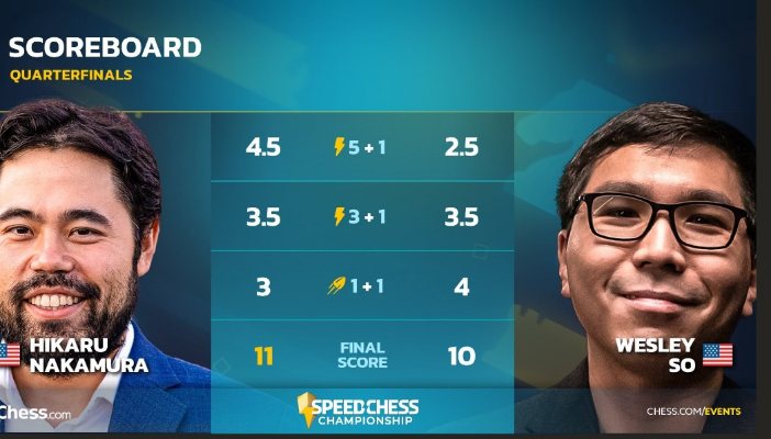 | Уэсли Со сравнялся с Накамурой в 3+1 и даже выиграл секцию 1+1, но Хикару вышел в лондонский финал, одержав захватывающую победу со счетом 11-10! |
