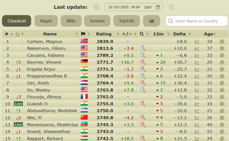 Чемпион мира Гукеш успешно сыграл на Кубке европейских клубов, вернулся в топ-10 и теперь отправляется в США, где ему предстоят встречи с Магнусом, Хикару и Фаби📍