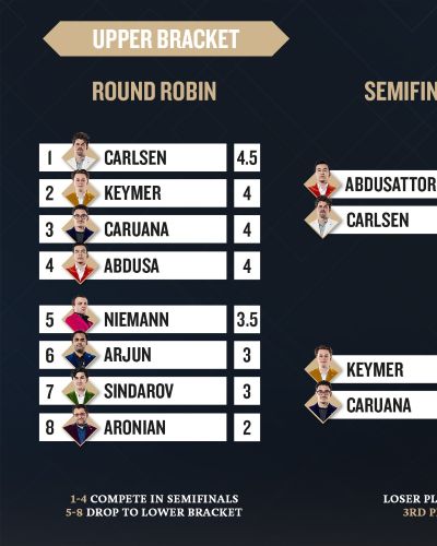 Отчасти это было связано с форматом. Два месяца назад в Южной Африке никто не выбывал после первого дня группового этапа , который определял только пары на выбывание. На этот раз, однако, если вы оказывались в нижней половине турнирной таблицы, ваш шанс побороться за 100 000 долларов и титул чемпиона мира исчезал. «Мне нравится, что здесь царит жесткая конкуренция, и никому не будет легко пройти дальше!» — сказал Карлсен.