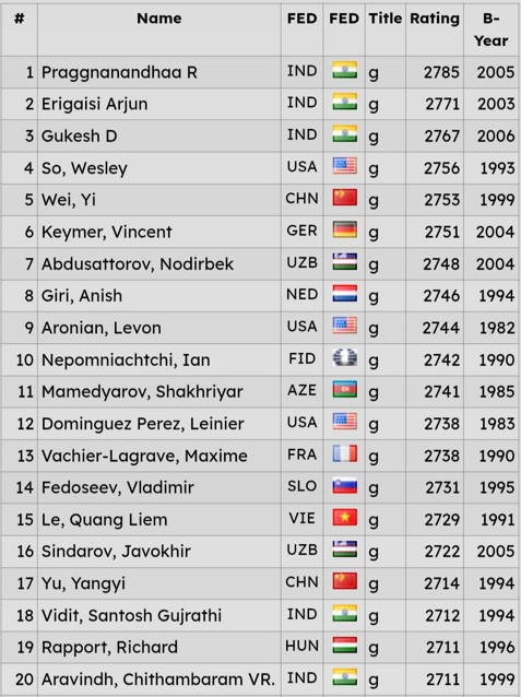 | kaluga: а Алиреза видимо психанул от третьего места в Grand Swiss. Так что в этот раз турнир претендентов без него. |
