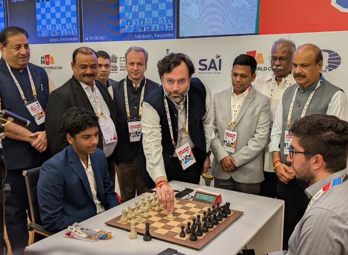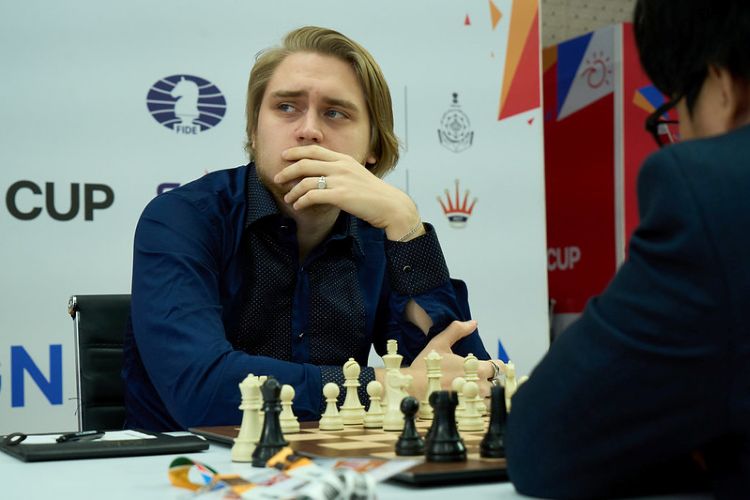 Я здесь с Ягызом Каном Эрдогмушем, который начал этот турнир с громкой победы на первой доске, выиграв красивую партию. Расскажи нам о ней, Ягыз.