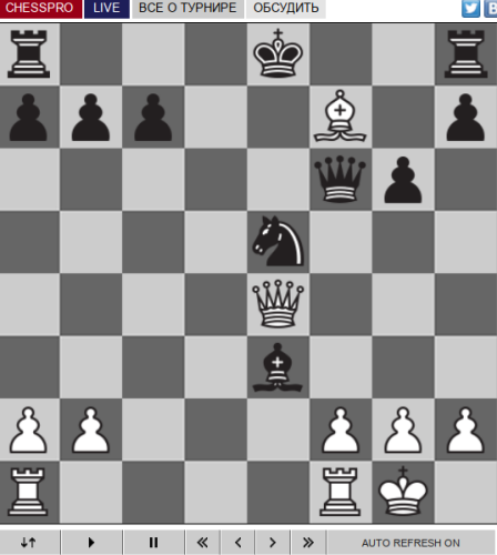 — Это была более или менее нормальная позиция. Я не очень помнил, что собирался делать, но подумал — ладно, мой соперник не слишком опытен в Петроффе, он только недавно начал его играть, так что, может быть, он не слишком хорошо знает такие структуры.