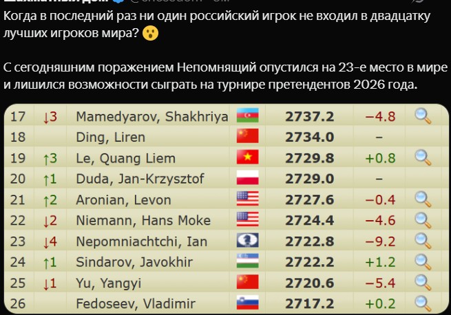 Отличный ответ. Мне интересно твоё мнение о том, что игра на Кубке мира усложняет путь тем, кто хочет пройти дальше к Кандидатам и матчу. Как ты к этому относишься?