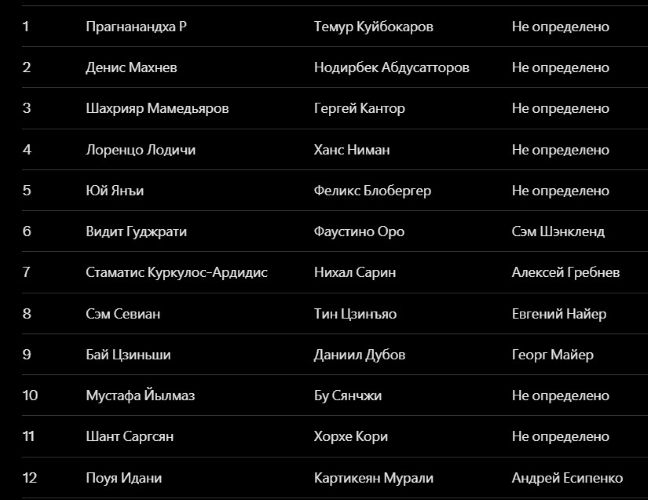— На самом деле матч первого раунда закончился вничью, и мы играли тай-брейк. В тай-брейке я выиграл 2:0. Но классические партии были сложными: в первой я стоял хуже, во второй — лучше, но не смог реализовать. Зато тай-брейки прошли гладко.