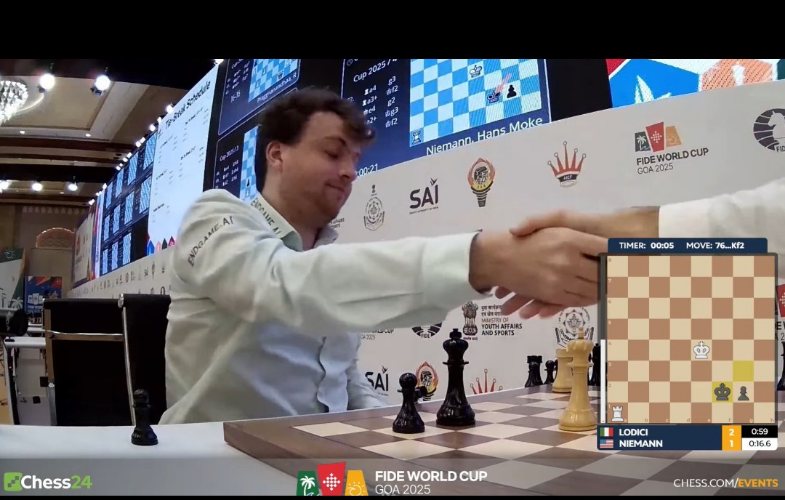 | Выиграв первый тай-брейк, Лоренцо Лодичи сыграл вничью во втором и выбил Ханса Неймана из турнира FIDEWorldCup2025. |