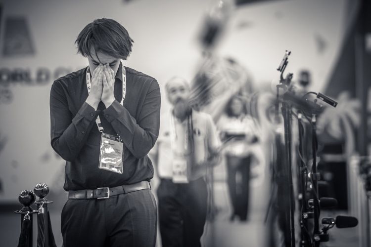 — Смесь эмоций. Я понял, что нужно было сыграть G4. Но в голове я анализировал два направления, углубился в одно, но так и не пришёл к выводу. Преимущество у меня сохранялось, но нужно было его реализовать. Я пытался найти что-то конкретное, но так и не нашёл, и он начал повторять ходы.