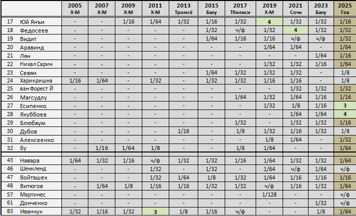 Не добавлены также и двоим из проигравших в четвертьфинале - Эригайси и Жоспему.