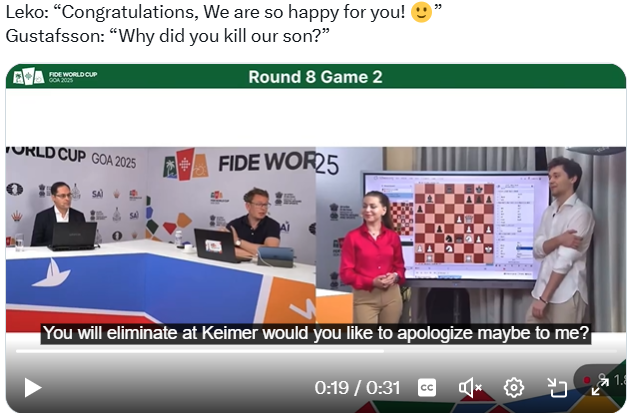 — За доской я чувствовал, что у меня что-то есть, но не мог найти. Я думал… ну, вы видели позицию, когда я поставил слона на b5. Я думал, что в этот момент выигрываю, но полностью забыл, что он может разменять слонов, и это полностью ничейная позиция, потому что у меня пешка стоит на g4. Если бы она была на g2 — был бы полный выигрыш.