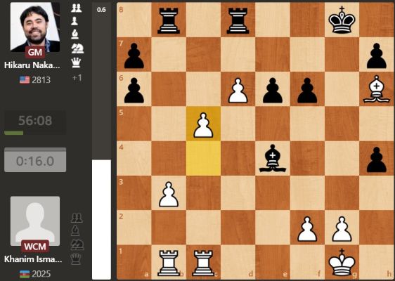 Партия шла своим чередом, и в какой-то момент я начинаю задумываться: а вообще, хочу ли я играть на победу? Или просто хочу безопасно дойти до ничьей? У него уровень, честно говоря, заметно выше, чем у моей соперницы из второго тура. И я снова попадаю в ту же ловушку: начинаю думать в стиле «что бы сделал противник 2700?», хотя логика должна быть простой: играй лучшие ходы.