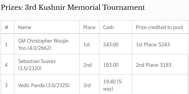 🥈 По дополнительным показателям серебряным призёром стал международный мастер Артур Давтян.