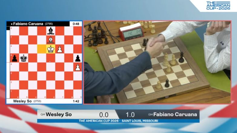 Каруана отстал на очко (8-12 места). Проиграл две партии, одну из них - Мишре. С которым сегодня и завтра встречается в "классическом" The American Cup 2026. |