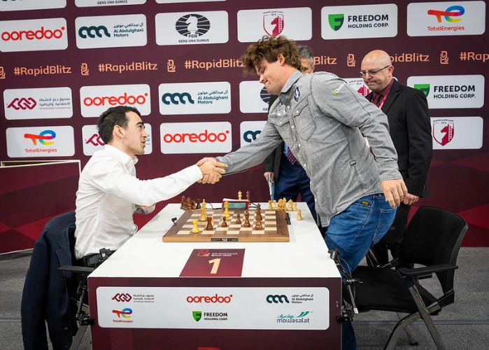 | Арджун Эригаиси отказывается от повтора и получает в награду победу! Он опережает соперников на одно очко за два тура до финиша! |