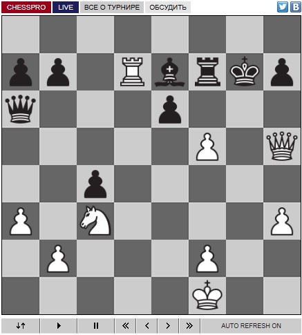 А вообще на турнире всех что-то лихорадит, чередуют блестящие партии с откровенными провалами, Каймер уже к 13 ходу проигранную позицию имел, а объективно не очень хорошую - к 11.