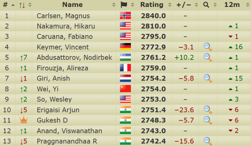 Арджун набрал впечатляющие 10,5/13 очков и выиграл турнир Challenger в своем первом выступлении в Вейк-ан-Зее в 2022 году, но его опыт на Masters был почти бесконечным мучением. В 2023 году он потерял 21,4 очка, в 2025 году — 24,3 (несмотря на победы над Абдусатторовым и Гукешем в последних двух партиях), а в этом году он потерял уже 23,6 очка после победы в первом раунде над Праггнанандхой и четырех поражений. Таким образом, в этом элитном турнире он потерял 69,3 рейтинговых очка.