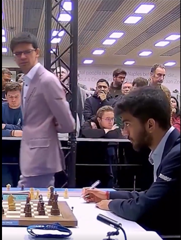 — Да. И против Аниша я пропустил ход слоном на b5. Не знаю почему, просто забыл, что могу сыграть слон b5 и слон e8. Я сыграл слон a6, и это была проигрышная позиция. Конечно, я был очень расстроен.