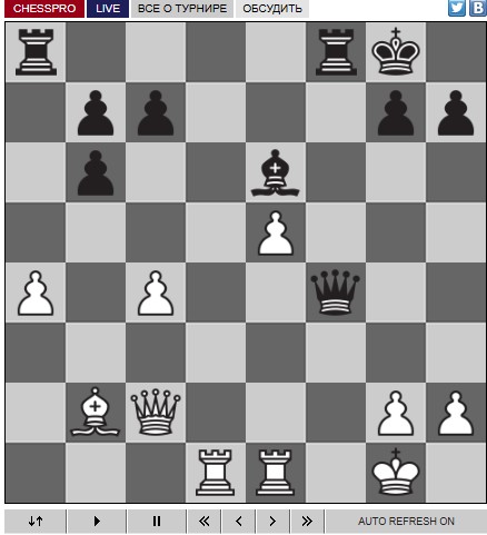 А Эригайси и впрямь доигрался, сейчас Абдусатторов перейдёт к сбору урожая на ферзевом фланге. Ничья Нодирбека, конечно, уже не устраивает, ибо "плюс четыре" хорошо, а "плюс пять" лучше!