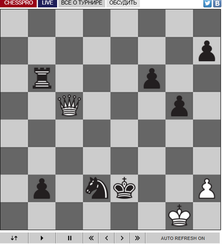 — Да, я увидел коня на c1 и подумал: «О боже». Потом он ещё сыграл не лучшим образом, но я был слишком уставшим, чтобы воспользоваться шансами. Когда я сделал ход за девять секунд, это было потому, что я вообще не хотел думать — был полностью выжат.