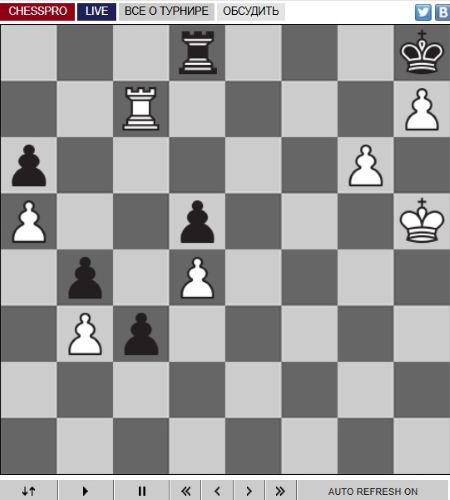 Контроль времени: 90 минут на 40 ходов, затем 30 минут до конца партии плюс 30 секунд на ход, начиная с первого.