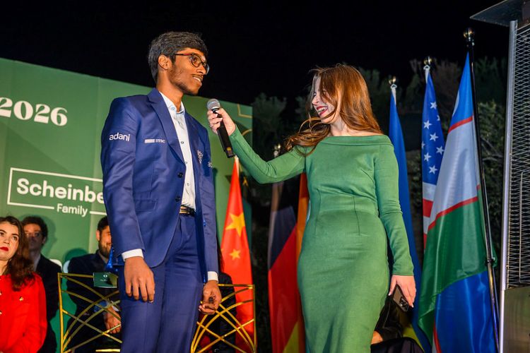 Девушку-красавицу, которая сопровождает Фабиано, я показывал не раз. Сейчас лень искать свой пост, хотя даже помню, что спрашивал у коллег, как её зовут. А кто такой Григорий Опарин в шахматном мире — по-моему, комментарии лишние.