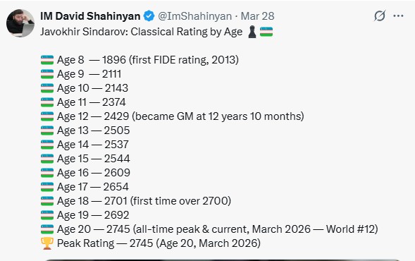 Мнение за Синдарова. Он сам по себе "неплохой шахматист". Но есть факторы, которые немного обьясняют его суперстарт. Огромная подготовка к турниру. Мощнейшая бригада помощников. Один Роман стоит целой команды. Откатка вариантов на Абдусатторове. А ведь ещё Нодирбек скинул "досье" на всех соперников. Он то соперников лучше знает. Очень интересно, что они Наке заготовили.