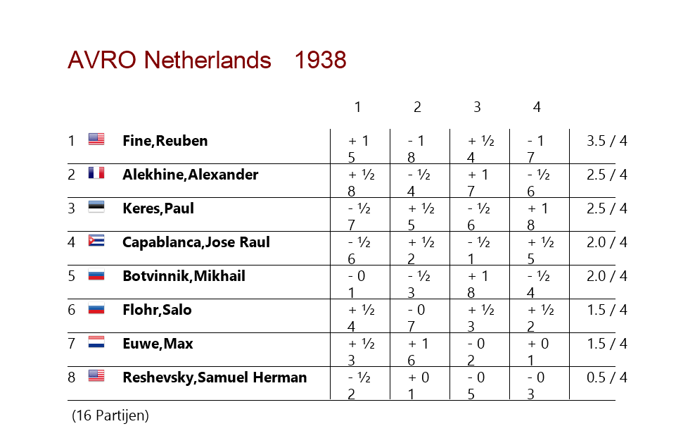 Не следует ли нам учитывать Рубена Файна на AVRO 1938, двухкруговом (по сути — кандидатовском) турнире, который определял право бросить вызов чемпиону мира?