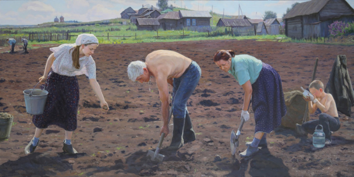 Кичевая "девушка с сенбернаром" не стоит материалов, ведь даже "так и я смогу" и таких "щедевров"- буквально миллионы. Грубо говря, 4 примера "раскрашенных фотографий!. Представил "огородников". несколько часов позирующих художнику в таких позах. |