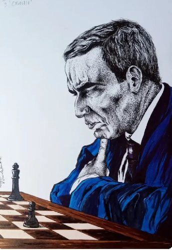 Уважение к великому Мастеру (Бобби Фишер),масло на холсте, 100 × 100 см.