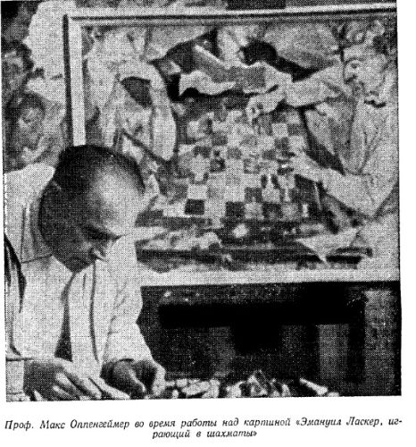| romm: Мопп создал несколько полотен, посвященных Ласкеру. В книге "Мыслитель" есть фотография Моппа, работающего над одним из них. |