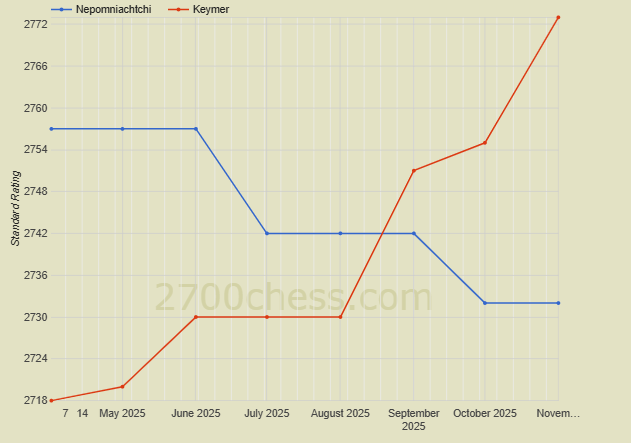 Почитатель: Больше трех лет прошло с тех пор как планка топ-десятки свалилась ниже 2760, и казалось, что возврата к прошлому не будет. Однако дружные усилия Каймера, Гири и Гукеша в Европе, а также Со в Америке - и 1 ноября возвращаются старые времена.