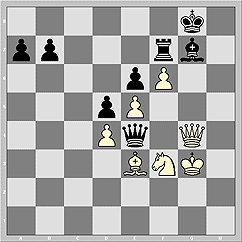 Black can resign with a perfectly clear conscience. How could two of the best players in the world miss such an obvious thing? Of course, I don't know for certain, but for whatever it's worth, here is my theory. In two important ways, this line is very counter-intuitive. Not only is White relinquishing control on the f1 square by playing 32.Rxg4, on the next move he has to make a move along the c-file and away from the b1-h7 diagonal, along which all the action up to this point has been concentrated. Of course, once you spot 33.Qc7, you immediately realize that Black only has one check, and the bishop on g7 is defenceless - but even looking in that direction seems completely unnatural. Another important thing to note is that the position in front of you does not come with a caption at the bottom: 'White to play and win in two moves' - I am quite certain Veselin would have found the solution if he was sure it was there. This is where the computer has an overwhelming advantage over humans - the silicon is of course completely impervious to the kind of psychobabble I have just offered as explanation. Upon reflection, I was able to remember a similar story I (and millions of chess lovers who've read the book on Zurich 1953) read about as a child.