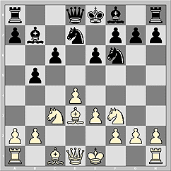 9... b4 10. Ne4 Nxe4 11. Bxe4 bxa3 12. O-O. От белых требуются достаточно резкие меры, дабы не допустить полного опреснения позиции. Само собой разумеющиеся ходы с этой целью уже могут не помочь - 12. bxa3 Bd6 13. Bd2 Rb8 14. Qa4 c5 15. Bxb7 Rxb7 16. dxc5 Bxc5 17. Ba5 Qb8 18. Rd1 O-O! 1/2-1/2, Карпов - Крамник, Дортмунд 1995.