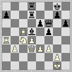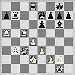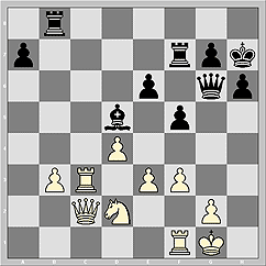 27. Qd1 Be4 28. Qa1 Rb7 29. Nd2 Bg6 30. Qc3. Схематически - шансы на стороне белых, но без помощи партнера им не дождаться момента перехода к выгодной конкретике.