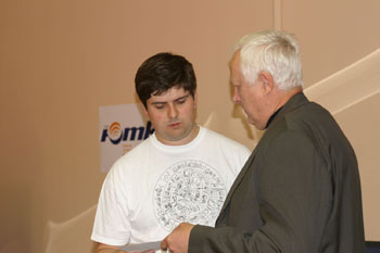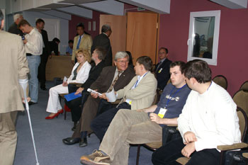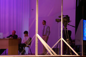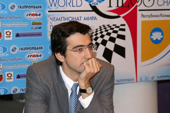 Мы расстались, когда Крамник не вышел на 5-ю партию и ему засчитали поражение. После чего долго тянули резину, пытаясь договориться. Но Крамник не хотел договариваться. Его устраивал только счет 3:1. Топалов, который сидел на сцене целый час в ожидании противника, естественно, хотел за свою отсидку получить очко. Которое вырвали в муках. Он его получил. Вы видите, как Кирсан Илюмжинов зачитывает приговор - решение продолжить состязание за корону при счете 3:2.